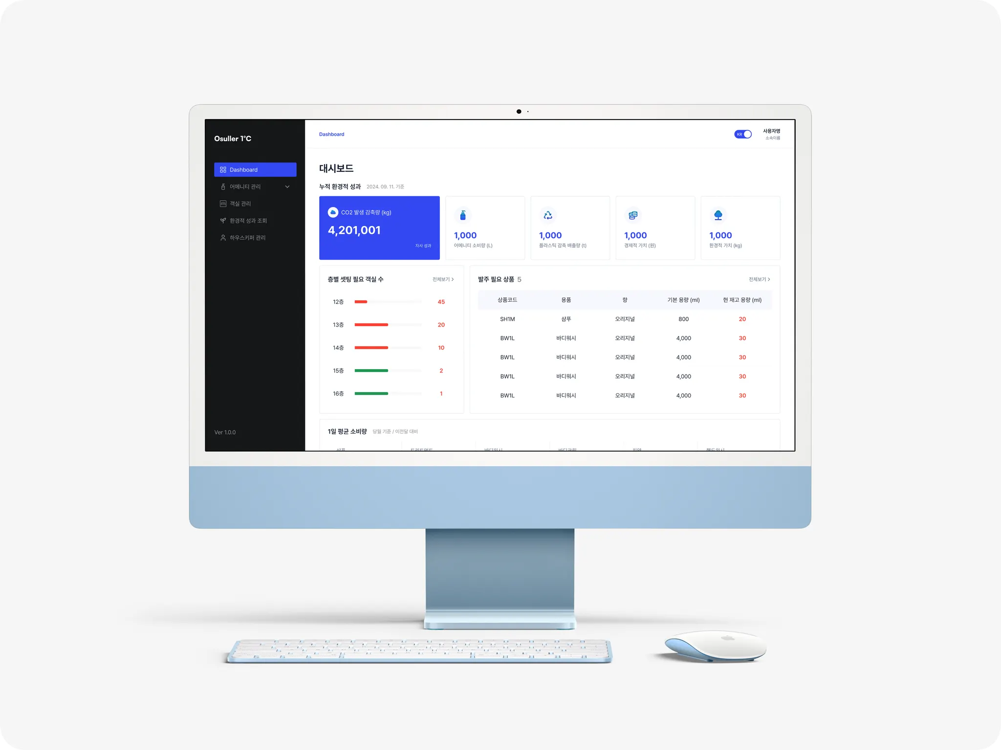 대시보드를 통해서 환경적 성과, 1인 평균 소비량 등의 다양한 지표를 확인할 수 있습니다.