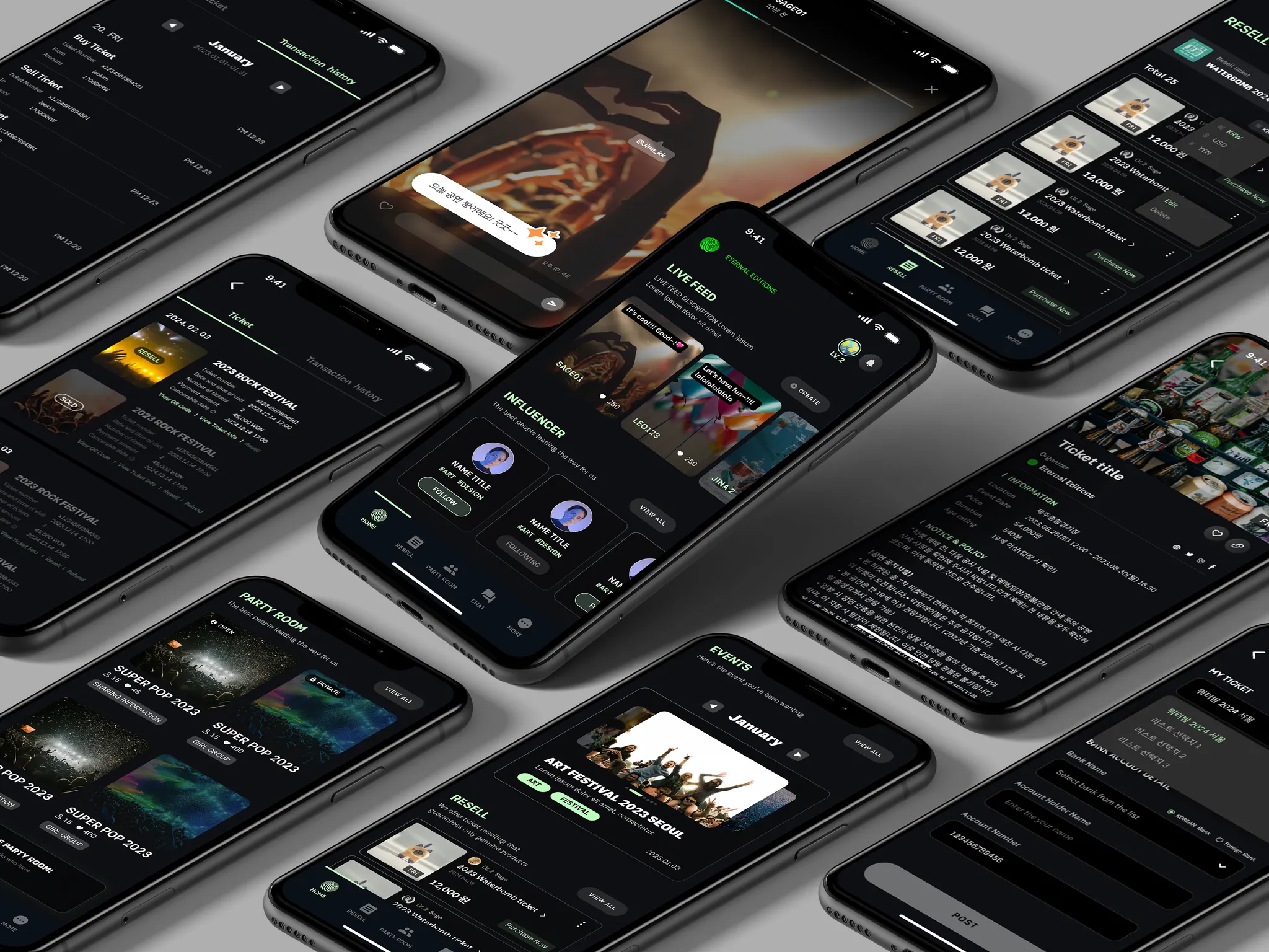 홈화면에서 현재 진행 중인 라이브 행사와, 이벤트 등을 확인하고, 티켓을 리셀할 수 있습니다