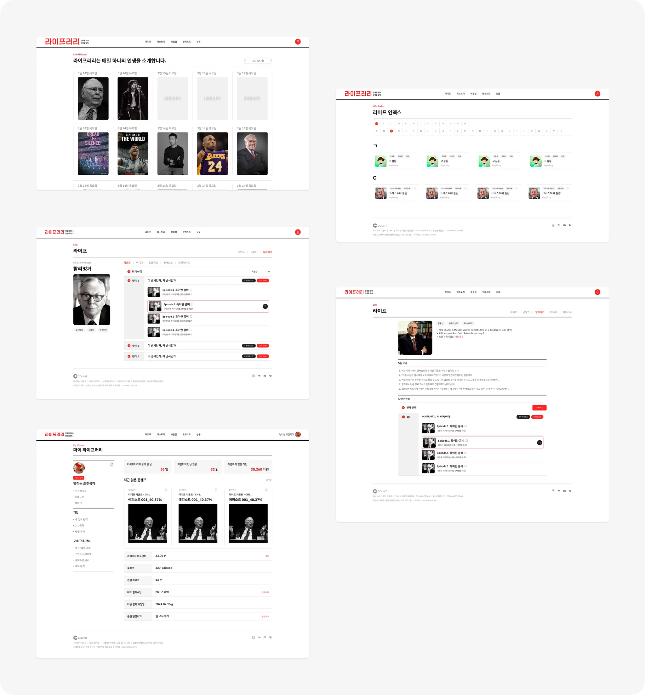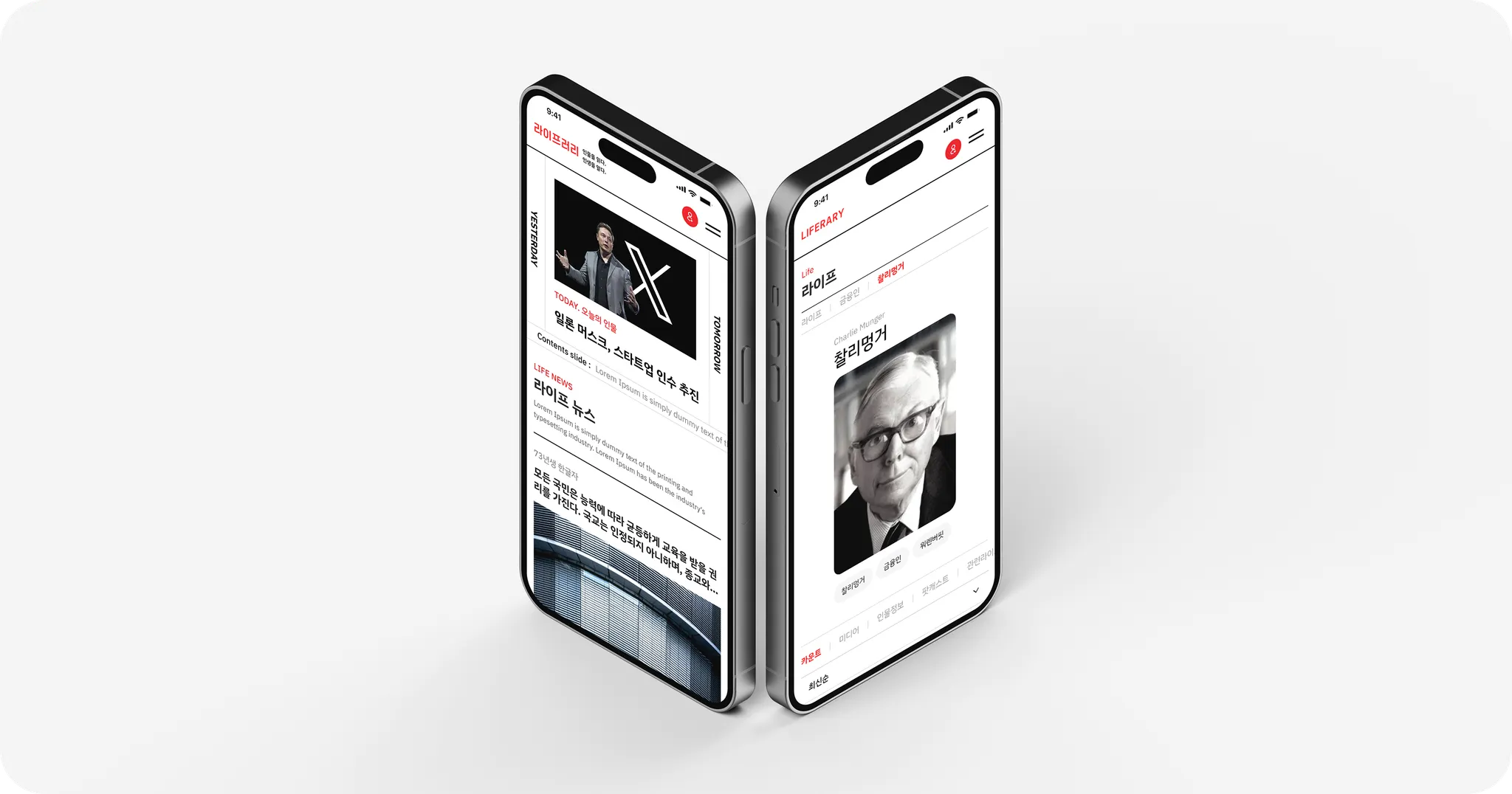 레드를 포인트 컬러로 사용하여 Lifelary 플랫폼의 경쾌함과 모던함을 강조하였습니다.