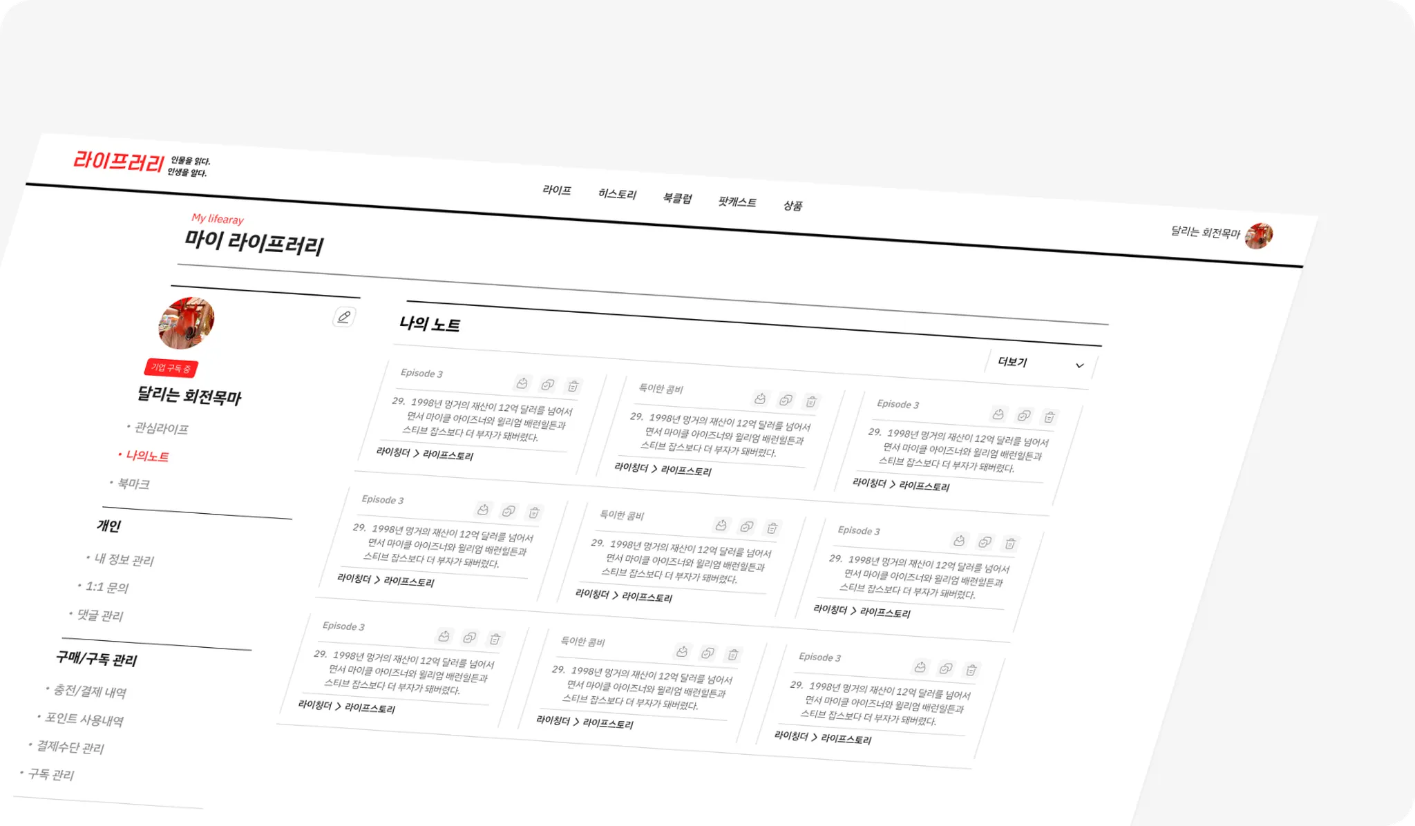 마이 라이프러리에서 이용 현황을 확인하고, 구독 기능을 통해 추가 콘텐츠를 정기적으로 확인할 수 있습니다